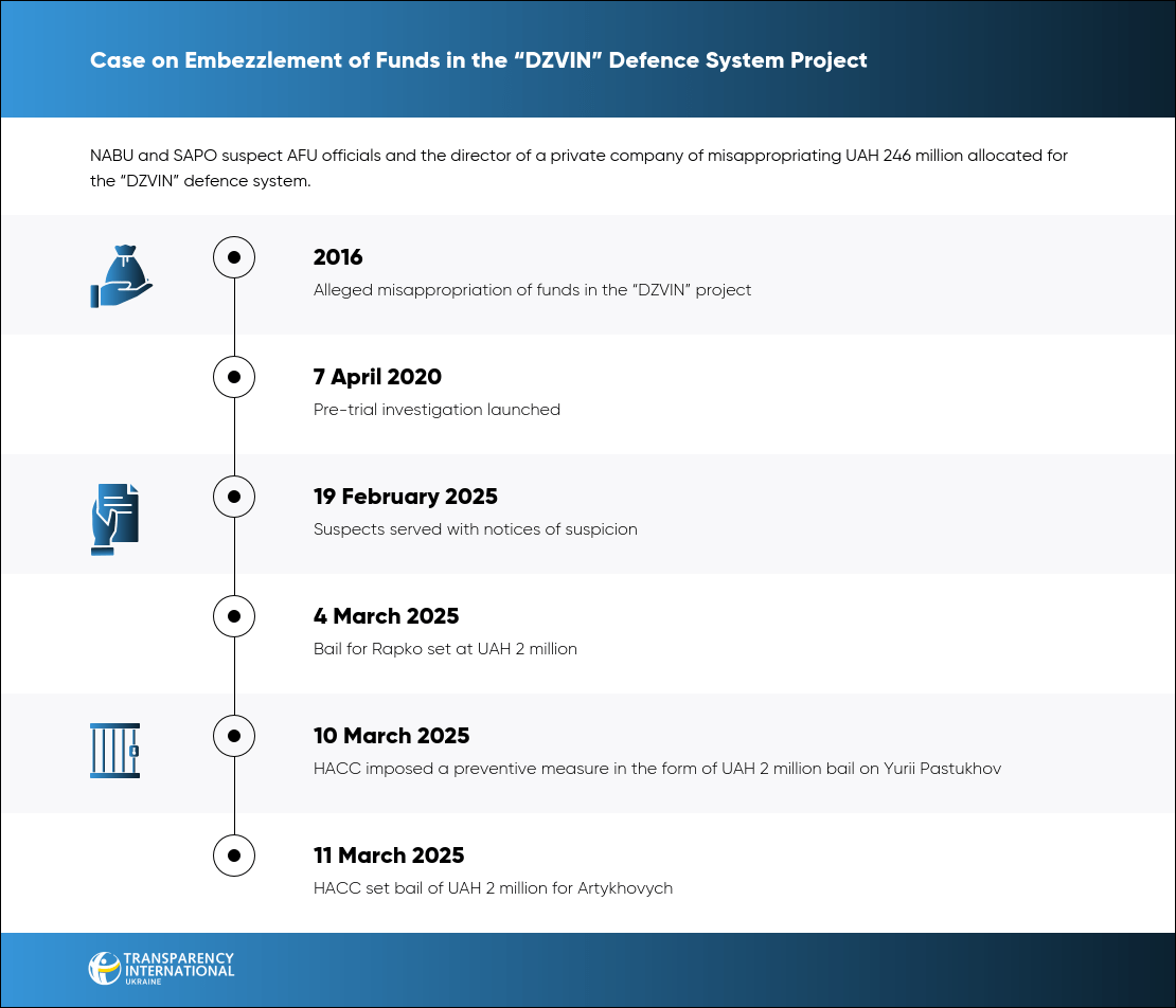 Despite these significant shortcomings, at the end of 2022 the “DZVIN” system was officially accepted into service by the AFU. Already in 2024, instead of addressing its critical deficiencies, additional funding was proposed for further work on the system. This may indicate not only attempts to conceal previous corruption offences but also the intent to continue them.