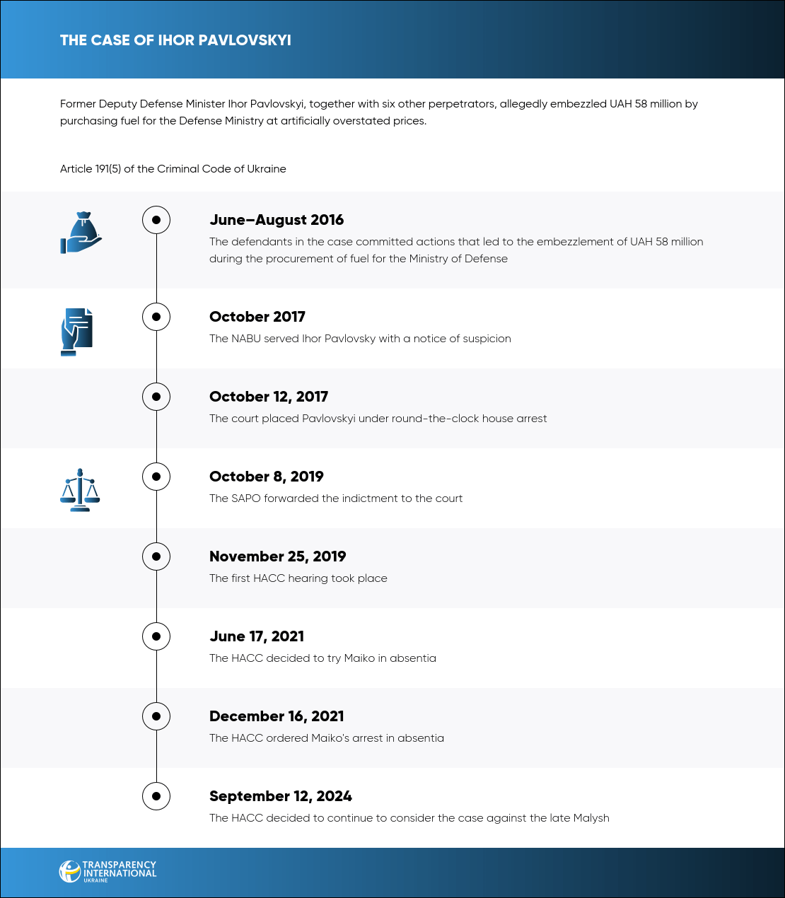All defendants are charged under Article 191(5) of the Criminal Code of Ukraine.