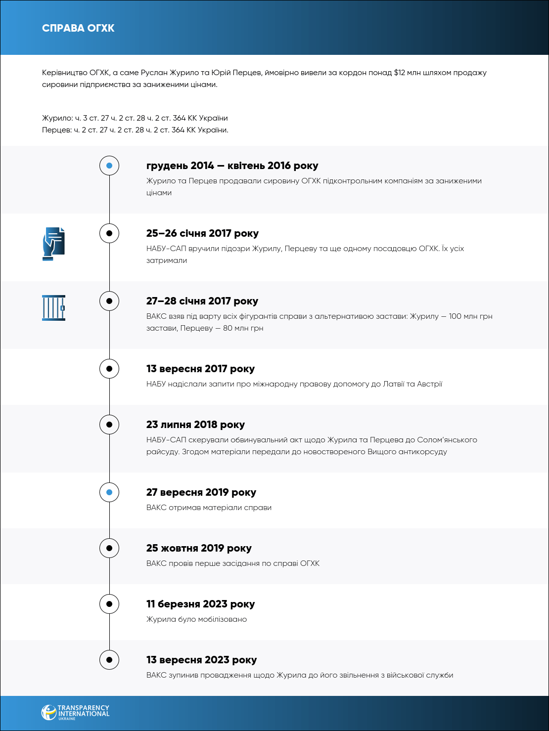 На час вчинення інкримінованих фігурантам діянь ОГХК було державним підприємством. У 2021 році аукціон з продажу компанії зірвався, а у 2024 році ОГХК було приватизовано.