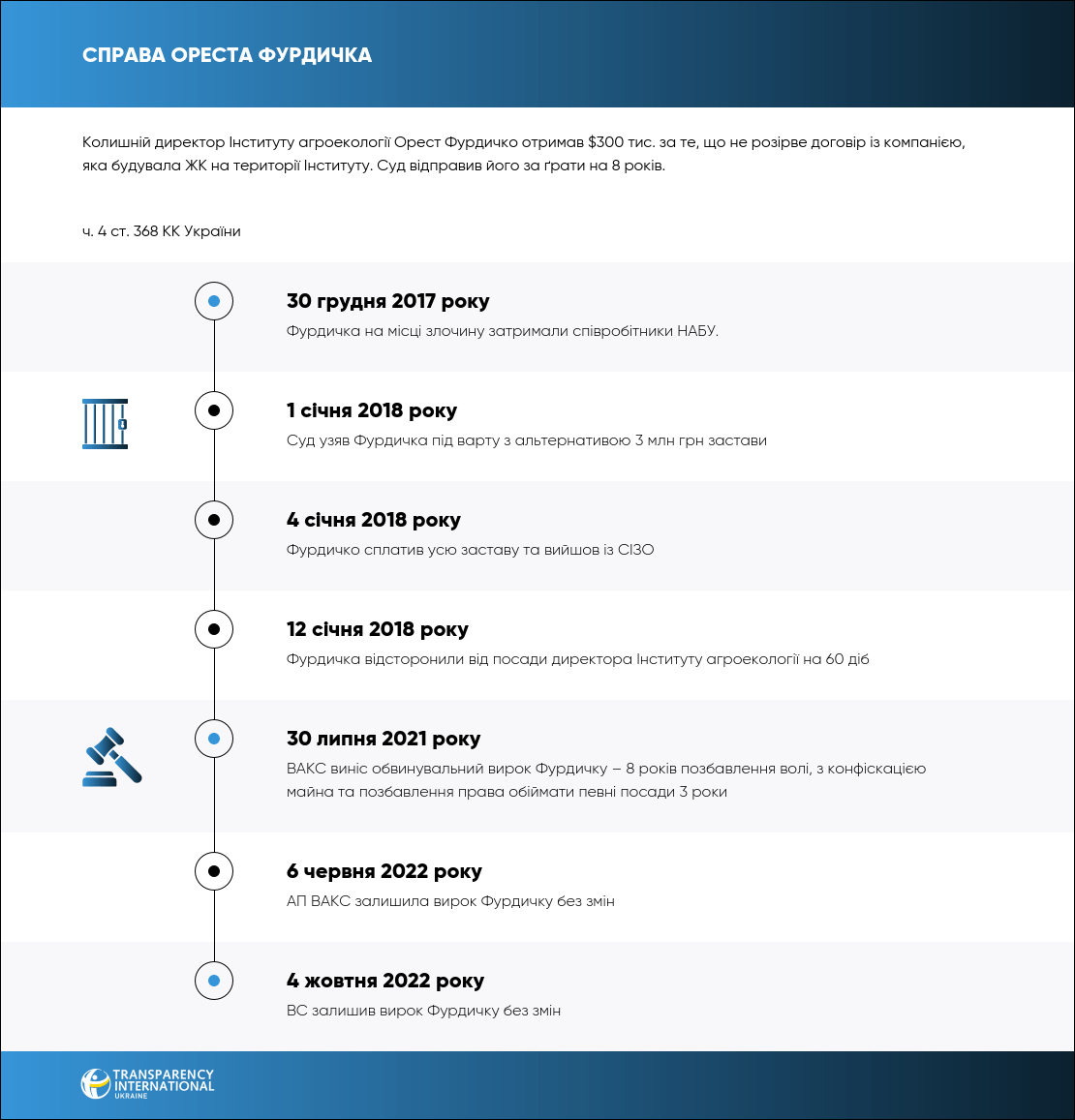 30 липня 2021 року ВАКС визнав винним ексдиректора Інституту агроекології Ореста Фурдичка в тому, що він отримав $300 тис. від приватної компанії за продовження співпраці за договором.