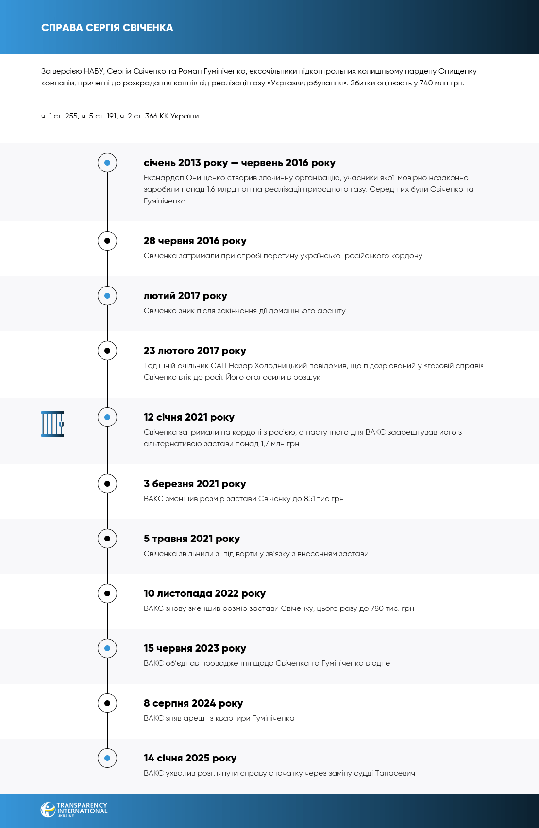 НАБУ та САП обвинувачують ексдиректора ТОВ «Надра Геоцентр» Сергія Свіченка та ексдиректора ТОВ «Торговий дім “Київгазенерго”» Романа Гумініченка в участі у «газовій схемі» екснардепа-втікача Олександра Онищенка.