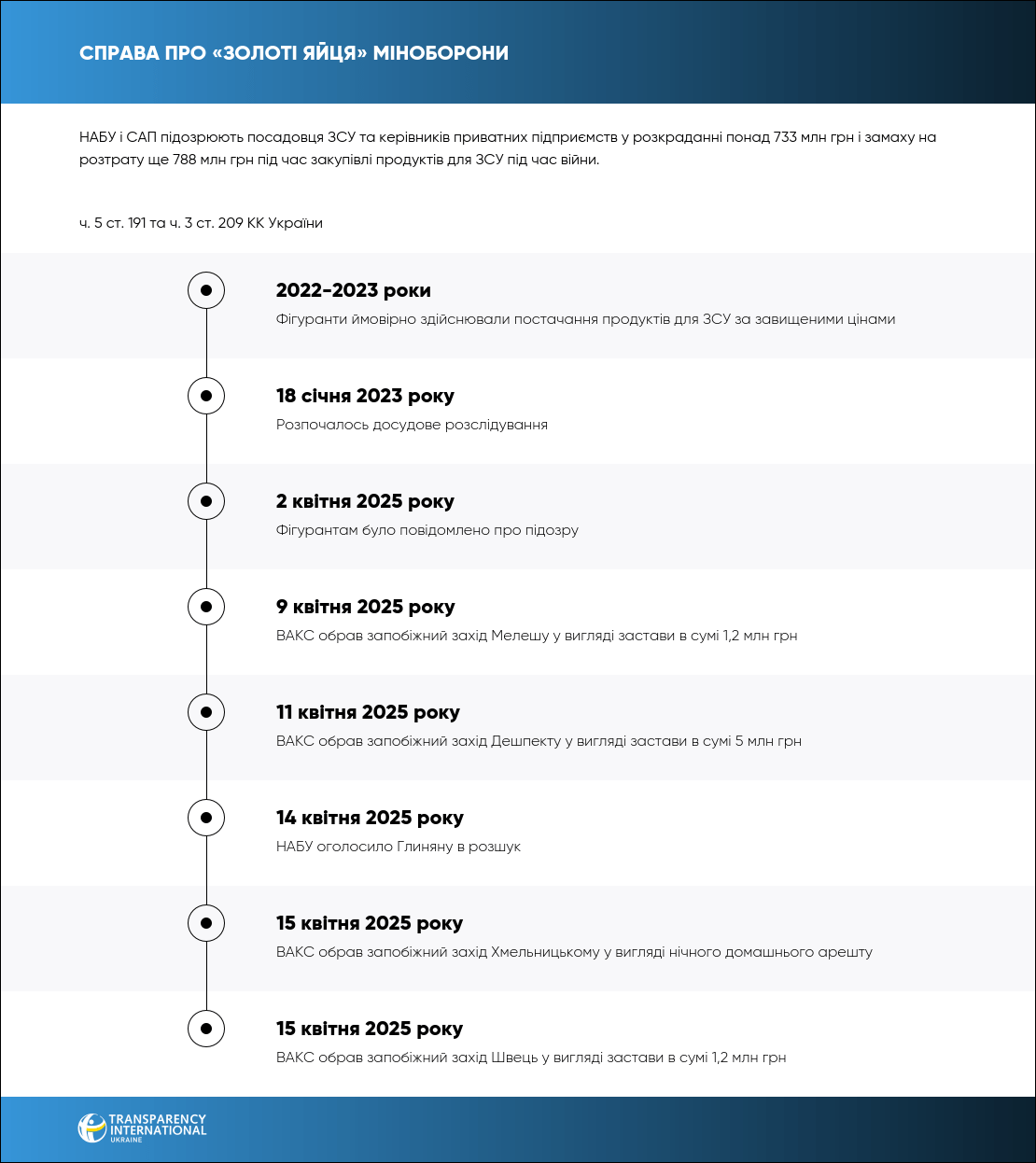 Дії фігурантів кваліфікують за ч. 5 ст. 191 та ч. 3 ст. 209 КК України. Тетяна Глиняна знаходиться в розшуку оскільки з 2023 року перебуває закордоном.